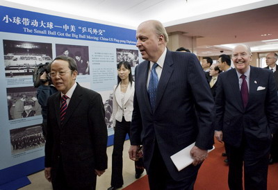 "Sino-US relations are at a crucial point linking the past to the future," Dai told the US Deputy Secretary of State John D. Negroponte, who was here to honor the 30th anniversary of Sino-US relations. Dai said China and the US shared common interests and consolidated a strategic foundation. This paved the way for further development of the relationship. He summarized four achievements in Sino-US relations made during the Bush administration. --The two countries confirmed the relationship as stakeholders and constructive cooperators. --The two heads of state maintained frequent contacts. --High-level strategic dialogues were institutionalized to promote mutual trust and cooperation. --Cooperation in all areas deepened such as major international and regional issues. "Sino-US relations have made remarkable progress over the past three decades and this linked the two countries closely," Dai said. Negroponte said both the US and China were important countries in the world and needed more dialogue and cooperation to safeguard global security and stability. The strategic dialogue and the strategic and economic dialogue were two effective mechanisms and should be continued, he said. ![]() ![]() ![]() |