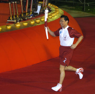 Academy of Science, runs with the torch for the 15th Asian Games in