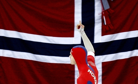 Norway's Even Wetten reacts after the men's 500 meters World Sprint Speed Skating Championships race at the former Olympic "Viking Ship" hall in Hammar, January 20, 2007.[Reuters]