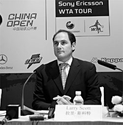 Beijing to be 'world tennis capital'By Zhao Rui (China Daily)Updated: 2007-04-27 11:23 With the arrival of the top women's tennis event in 2009, WTA Chief Executive Officer Larry Scott has vowed to turn Beijing into the "tennis capital of the world". "We want to make Beijing a true tennis capital in the world," said Scott, who is visiting the city this week. "The city is our most important focus and a base to promote the sport in different cities and also the whole of Asia.