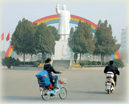 Farmers work on the land for a living, but Zhao Minsheng does so more or less for fun. He doesn't work for himself, and has no fixed land to work on or fall back upon. Despite that he has a steady monthly income of 400 yuan ($59). The 60-year-old leads a team of 22 co-workers in Nanjie, a village in the heart of Henan province. Agricultural output has soared in this village of re-collectivized farmland, though the 22 villagers, mostly men whose average age is 55, work on 600 mu (40 hectares) of land with just a pair each of corn and wheat harvesting equipment. They grow 900 kg of crop per mu and make 800,000 yuan a year. The farmers call themselves "farm workers" and work the land as a collective. The rest of the residents work in the village's 26 firms, mostly making and selling instant noodles, flour, spices, chocolate, beer, liquor and medicine. All of them give the income to the village and get free housing, healthcare, education, water, electricity and heating in return. All this makes the villagers proud, for they have "solved the problems still plaguing other villages", such as farmers' fear of lax supervision. While other villages debate how to apply the central government's new policy that encourages land-use transfer for collective farming and agricultural mechanization, Nanjie sits pretty with its successful experiment. "Collective economy is the inevitable path and the basis to solving sannong problems (farmers, villages and agriculture)," says Nanjie's Party chief Wang Hongbin. Nanjie is different from other villages. It wakes up to the tune of The East is Red at 6:15 am, greets its workers with Sailing the Seas Depends on the Helmsman around noon and sends them home with Socialism is Good playing on the broadcast station at 5 pm. A 6-m-tall statue of Chairman Mao Zedong lords over the village center, flanked by portraits of Marx, Engels, Lenin and Stalin, with local militia being on sentry duty round the clock. But the village embodies much more than utopian nostalgia. Thirty years into reforms, and at a time of crippling free market and rising number of rural cooperatives, Nanjie remains a leading name among the 7,000 to 10,000 Chinese villages that have held onto or readapted the collective model. Quite a few villages in Henan have copied Nanjie's model. Even leaders from Anhui province's Xiaogang village, the "birthplace of China's reform", have visited Nanjie and left words of appreciation and admiration in its museum guest book. This is what Xiaogang Party chief Shen Hao has written: "(We will) learn from Nanjie, strengthen the collective economy and proceed toward common prosperity." Nanjie is home to and provides free housing, healthcare and education to about 3,200 residents and more than 3,000 migrant workers who have been given "honorary resident" status.