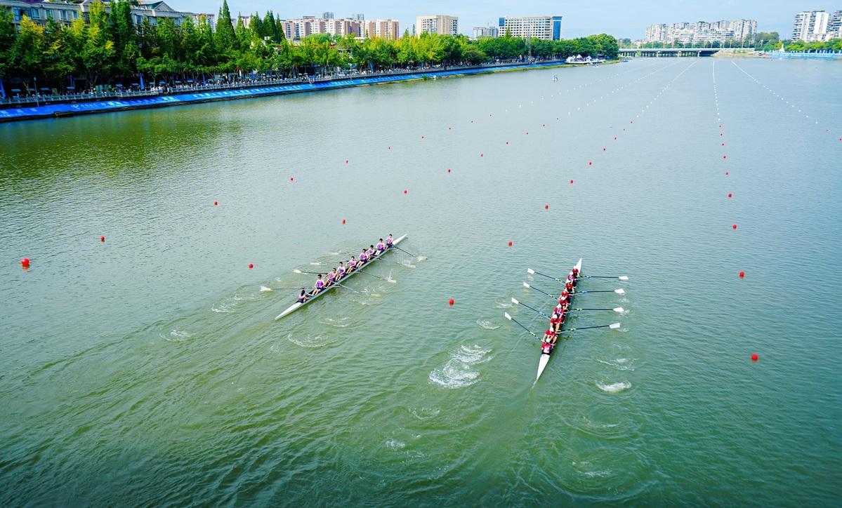 The rowing team from Deyang, Sichuan claimed first place in the men's quadruple sculls 800-meter straight-course race, while Sichuan's Jiangyang and Meishan teams took second and third places.