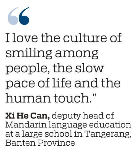 "I love the culture of smiling among people, the slow pace of life and the human touch," said Xi, who has lived in Indonesia for 10 years after moving from a town in North China.