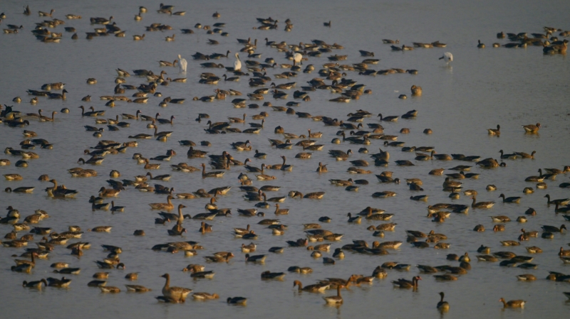 Poyang Lake welcomes its first flock of winter migratory birds, marking the start of this year's migration season. [Photo by Wang Xiaolong/For chinadaily.com.cn]