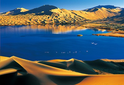 Located in the Alashan Plateau in the hyper-arid and temperate desert region of northwestern China, the Badain Jaran Desert is a meeting point for three sandy regions of China and is the country's third largest desert and second largest drifting desert. The property stands out with its high density of mega-dunes, intersected with inter-dunal lakes. It displays spectacular ongoing geological and geomorphic features of desert landscapes and landforms which may well be unparalleled. It was in 2024 that the Badain Jaran Desert — Towers of Sand and Lakes was added to the world natural heritage list.
