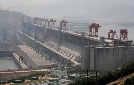 A general view shows the Three Gorges Dam on the Yangtze River in Yichang in Central China's Hubei Province May 17, 2006. [Reuters]
