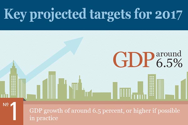 China sets its GDP growth target at "around 6.5 percent" for 2017, and the country will also try to achieve better results of growth in actual work this year.