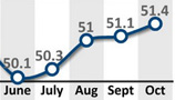 Trade with the United States, China's second-largest trade partner, rose 6.9 percent in the first 10 months, while that with Association of Southeast Asian Nations members increased 10.9 percent.