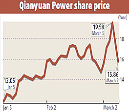 Guizhou Qianyuan Power Co, a small-sized Chinese power producer, posted a 766 percent jump in net profit for 2008 thanks to the abundant water supply that fired its hydropower stations.