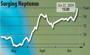 Shares prices of domestic vaccine makers rose sharply yesterday on surging orders for vaccines, as fears grew over a fresh outbreak of the H1N1 flu, even as the benchmark Shanghai Composite Index fell 2.83 percent
