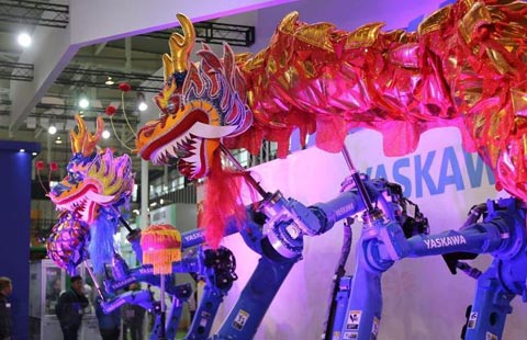 China is showcasing its burgeoning robot industry at the five-day exhibition in Beijing, part of a national effort to promote the use of more advanced technologies in Chinese factories and to create high-end products that redefine the meaning of "Made in China."