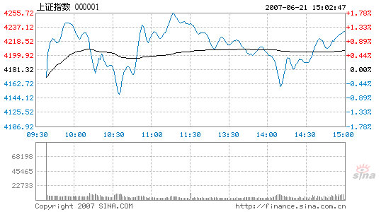 Chinese stocks fluctuated violently today but managed to return to a higher level. The Shanghai Composite Index closed at 4,230.82, up 49.5 points or 1.18 percent from yesterday's closing.