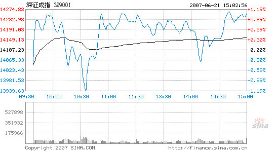 The Shenzhen Component Index, tracking the smaller Shenzhen Stock Exchange, closed at 14,255.61, up 148.38 points or 1.05 percent. Seeing more violent swings than the Shanghai index, the Shenzhen tracker went through the day within a range from 13,928.06 to 14,276.51.