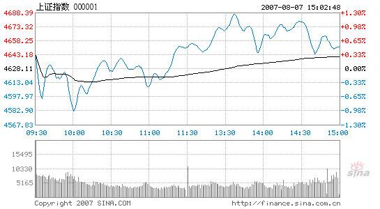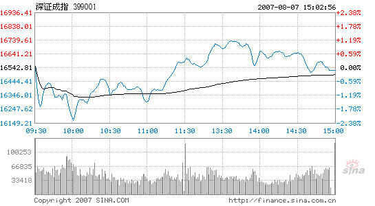 Updated: 2007-08-07 16:48 Higher volatility ruled the market today, as stocks listed in Shanghai outperformed the Shenzhen market, and the Shanghai Composite Index closed up on the fourth consecutive trading day and broke previous record highs for the third day in a row. Total turnover of the stocks in the two major indices was 276.6 billion yuan, the largest in a month. Shanghai Composite Index ![]() The Shanghai Composite Index opened lower from 4,642.01 and closed at 4,651.23, up 23.12 points or 0.5 percent over yesterday's closing, a new record high The spread between the lowest of 4,581.29, soon after the opening, and the highest of 4,642.01, on a surge initiated at the beginning of the afternoon session, was over 100 points, larger than yesterday's 65-point range. The larger spread reflected higher market volatility caused by intense battling between buying and selling bids. Of the A shares listed on the Shanghai bourse, 307 closed up while 473 slipped and 62 finished unchanged. Beijing North Phenix Intelligence Technology led a total of 13 stocks to rise at least 10 percent, the maximum movement cap for stocks on a single-day trading. Hangxiao Steel Structure, running into difficulties in its Angola project, was down 8.37 percent to finish the day on the bottom. China Unicom, with the largest trading volume, added 0.06 yuan to its share price. Chalco, with the day's largest transaction value, rose nearly 5 percent to 31.81 yuan. Shenzhen Component Index ![]() The Shenzhen Component Index, tracking the smaller Shenzhen Stock Exchange, was down 19.54 points or 0.12 percent to 16,523.27. Opening higher from 16,551.71, it went through the day in a range between 16,159.01 and 16,735.61, both numbers higher than the previous close. Of the A shares, 217 went up, 332 slipped, and 71 closed flat. Luoyang Chundu Foodstuffs, resuming trading today, went up 48 percent to 14.55 yuan as the top gainer while Hainan Haide Industry lost 7.27 percent on the other end of the table. The largest trader, China Vanke, lost 0.59 yuan in share price. Stocks in the mining, timber and paper-making industries rose the fastest. Gansu Jingyuan Coal Industry and Electricity Power rose 10 percent to lead other surging minors. Financial shares were also strong. Closed-end mutual funds were slightly down, with both the fund indices dropping less than 1 percent. B shares finished mixed, with 39 of them closing up, 9 unchanged and 63 down. Shanghai Friendship Group grew 10 percent as the top gainer. |