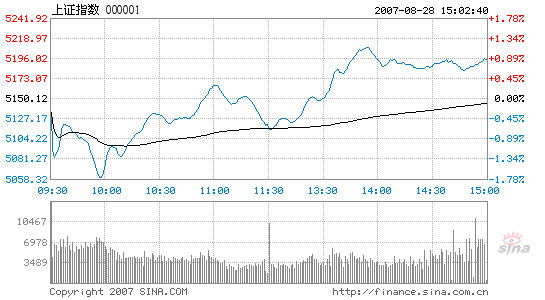 The Shanghai index slid after opening lower at 5,134.14 points, and hit a low of 5,058.45. Then it turned around to climb steadily, but dipped again in the last half-hour of the morning session. In the afternoon, it reclaimed the lost ground. The spread between the lowest point and the highest 5,209.51, at the mid-afternoon session, grew to 151 points, the largest since last Monday. Finally, the index stopped at 5,194.69, up 44.57 points or 0.87 percent from yesterday. Of all the A shares in Shanghai, 331 went up, 444 closed down and 67 ended flat.