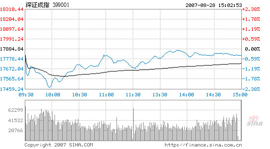 The Shenzhen Component Index, tracking the smaller Shenzhen Stock Exchange, closed at 17,817.931, down 66.91 points or 0.37 percent. Opening lower at 17,815.11, it went through the day below yesterday's closing level, within a range of between 17468.69 and 17,870.95. Of the A shares, 232 rose, 326 dropped and 81 stayed unchanged.