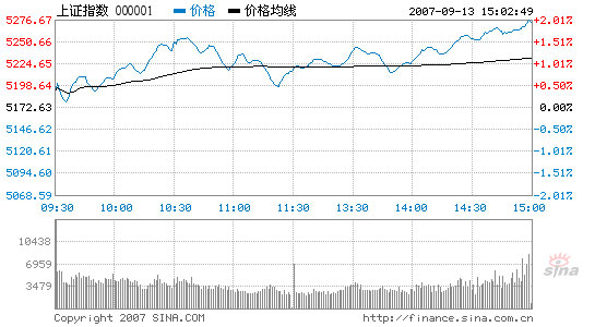 The benchmark Shanghai index opened 20 points higher at 5,193.41 and touched a low of 5,178.87 before marching up to the 5,200-point level. After hitting a temporary high, it slid back to the second lowest point of the day soon before the noon break. In the afternoon, however, it began another rebound and finished just lower than the highest 5,276.77.
