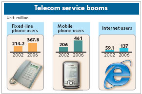 The increased investment in basic industries and infrastructure has helped build a number of major projects nationwide that have great bearing on the well-being of the nation. The project that transmits power from energy-rich west to the east, for example, has transmitted 34,200 megawatts of electricity to ease the power shortage of the more prosperous east.