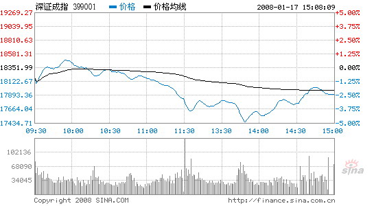 The Shenzhen Component Index, tracking the smaller Shenzhen Stock Exchange, closed at 17,910.39, down 441.61 points or 2.41 percent. Total turnover at the two exchanges was 268 billion yuan, the largest this week. The government has started to temporarily intervene in the market to control the prices of a range of daily necessities such as grain and meat, and rein in inflationary pressure. In an effort to soak up excess liquidity in the market, the PBOC has hiked the reserve requirement ratio 50 basis points to a record high 15 percent - meaning that there will be less cash available when the new law goes into effect on January 25. With continuous price corrections, the Chinese market joined the world's stock price plunges. Fears of a US recession and concerns about widening losses among top global financial institutions, such as Citigroup, from the subprime mortgage crisis, have put Asian stock markets under pressure. The Hong Kong stock exchange dived 5 percent yesterday. |