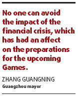 Updated: 2009-03-06 07:41 The global economic meltdown has affected the preparations for the 2010 Guangzhou Asian Games, with a number of sponsors backing out, the mayor of the capital of Guangdong province said yesterday.
