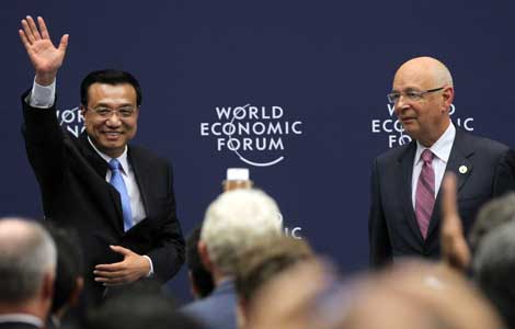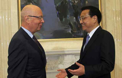 Chinese Premier Li Keqiang meets with Klaus Schwab, Executive Chairman of the World Economic Forum in Beijing, Sept 9, 2013.