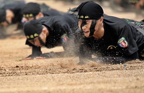 Elderly people admire beautiful flowers in Nantong city, Jiangsu province, Oct 9, 2016. [Photo/VCG] |