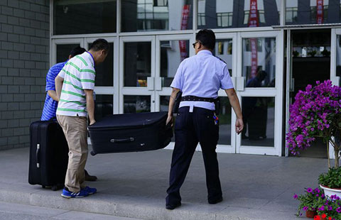 A visitor walks past a logo of FAW-Volkswagen during an auto show in Fuyang city, East China's Anhui province, September 12,?2014. [Photo / IC] |