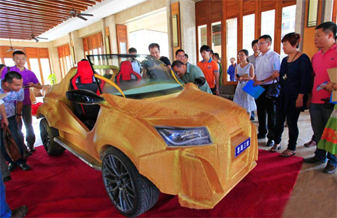 China's first concept car built using 3D-printing technology debuts in Sanya, South China’s Hainan province, March 24, 2015.