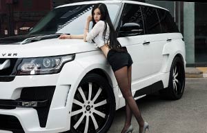 The Land Rover's Range Rover SUV is converted with Hamann wide body kit, Forgiato wheel hubs, and Remus exhaust system.