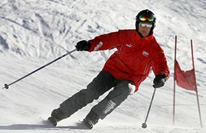 The 44-year-old German suffered a blow to the head after hitting a rock at the upmarket Alps resort, he was later listed as being in critical condition