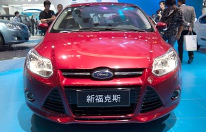 A Ford new Focus is pictured during the first media day of the 2012 Beijing International Automotive Exhibition (Auto China 2012) in Beijing on Monday.