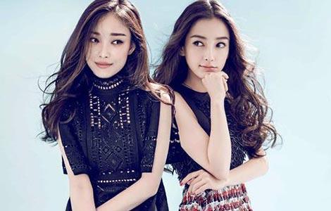Chinese actresses Angelababy and Ni Ni pose during a photo shoot for Cosmopolitan magazine.