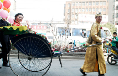 Rickshaw for wedding, a new trend (Xinhua) Updated: 2006-03-25 17:07