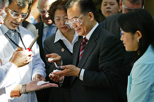 Premier Wen Jiabao (2nd-R) handles a formation of stable natural gas