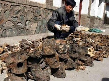 A photo published on the sohu.com web portal showed rows of skulls with the