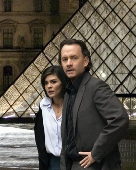 supplied by Sony Pictures, shows Audrey Tautou and Tom Hanks outside
