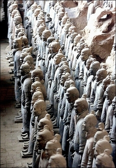 Terracotta Warriors over the weekend -- only to be discovered, disrobed and sent