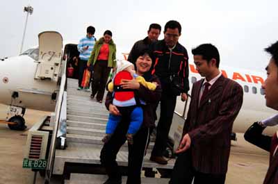 a chartered flight at Xiamen Airport in Xiamen, East China's Fujian