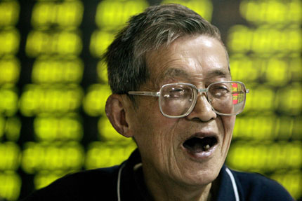 An investor stands in front of an electronic board at the stock exchange market in Shanghai June 4, 2007. China's main stock index tumbled 8.26 ercent or 330 points on Monday to close at 3670.40, adding to big losses suffered last week after the government hiked the share trading tax to cool speculation. [Reuters]