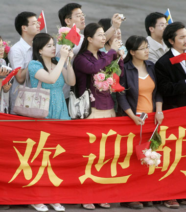 President Hu Jintao at Arlanda Airport in Stockholm June 8, 2007. Hu is on
