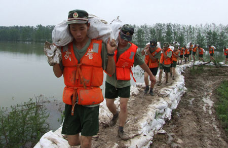 Huai River would remain at dangerously high levels for at least 10 days, Xinhua