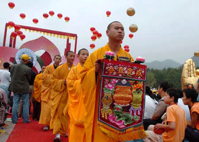 Monks pray for blessings at the opening ceremony of the 4th Buddhism Cultural Festival and the 18th International Tourism Month at Wutai Mountain of Xinzhou City, North China's Shanxi Province. [Xinhua]