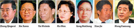 The country's top legislature Thursday approved the nomination of five new ministers, including Xie Xuren, former head of the State Administration of Taxation, as finance minister. Former finance chief Jin Renqing, who had served in the post since 2003 and turned 63 last month, was removed from office. The State Council yesterday appointed Jin as vice-president of its Development Research Center, and Xiao Jie as director of the State Administration of Taxation. Other appointees included: Geng Huichang, as minister of national security; Ma Wen, as minister of supervision; Yin Weimin, as minister of personnel; and Zhang Qingwei, as minister in charge of the State Commission of Science, Technology and Industry for National Defense (COSTIND). Vacating the top posts were Xu Yongyue (national security), Zhang Bolin (personnel) and Zhang Yunchuan (COSTIND), according to a bill passed by the Standing Committee of the National People's Congress (NPC). The former minister of supervision Li Zhilun died of illness at 65 in April. President Hu Jintao signed presidential decrees of approval for the replacements. Minister-level officials usually retire at the age of 65. Xu and Zhang Bolin are both 65 this year. The former COSTIND head Zhang Yunchuan will take up another post. Xie Xuren, the new finance minister, was born in Ningbo of Zhejiang Province in 1947. He joined the Communist Party of China (CPC) in 1980 and started work in 1967 at Zhenhai Machinery Factory in Ningbo. Before he became taxation chief in 2003, Xie worked with the Zhejiang government, the Ministry of Finance, the Agricultural Development Bank of China and the State Economic and Trade Commission. Ma Wen, 59, was deputy secretary of the Central Commission for Discipline Inspection (CCDI) of the CPC. She is a native of Wuqiao county in Hebei Province, and began to serve as member of the Standing Committee of CCDI in 1997. Geng Huichang was born in 1951 and was the former vice-minister of national security. Yin Weimin, 54, has been working in the Organization Department of the CPC Central Committee and some government departments, mainly in personnel management, since 1978. He was appointed vice-minister of personnel in 2000. The new head of COSTIND Zhang Qingwei acted as the general manager and Party chief of China Aerospace Science and Industry Corp (CASIC) since 2001. He had been the deputy head of the first institute of China Aerospace Industry Corporation as well. Meanwhile, China News Service reported yesterday that Meng Xuenong, former mayor of Beijing, was named deputy Party secretary of Shanxi Provincial committee to replace Yu YouJun. The appointment was announced by a vice-minister of the Organization Department of the Central Committee of the CPC at a meeting of major officials of the province, the report said. The 58-year-old Meng resigned as Beijing mayor during the city's fight against the SARS outbreak in April 2003 after serving in the post for only three months. Yu, 53, was mayor of Shenzhen, the country's first special economic zone, between June 2000 and May 2003, and vice-governor of Hunan Province before taking the post of acting governor and then governor of Shanxi in July 2005. It is learned that Yu will be appointed to another post, the report said. |