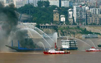 Organized by the Ministry of Communications and the Chongqing municipal government, the 2007 Yangtze Three Gorges Reservoir Joint Search and Rescue Maneuvre was aimed at testing and demonstrating the country's emergency response capabilities along the Yangtze, the world's busiest river in terms of cargo transportation, said officials from the Ministry of Communications. Involving 22 departments, the 90-minute exercise involved the rescue of passengers in a boat collision, extinguishing a fire and clearing an oil leak as a result of the collision. It also included the search and arrest of two terrorists and the removal of explosives, and the evacuation of passengers and boats from a site where a landslide was taking place. More than 500 people 68 boats and a helicopter participated in the exercise, Yuan Zongxiang, chief of the Yangtze River Maritime Bureau, said. Liu Dongcheng, deputy chief of the Maritime Bureau under the Ministry of Communications, said the exercise witnessed the use of the world's most advanced rescue equipment and the country's most advanced rescue boats. The Yangtze River transported 897 million tons of cargo last year, maintaining its position as the world's largest river in terms of cargo transportation, Liu said. The government attaches great importance to the development of the Yangtze River. During the 10th Five-Year Plan (2001-05), the country invested more than 3 billion yuan ($400 million) to improve navigation in the river during the dry season. Wang Yang, Party chief of Chongqing, said the reason the exercise was held in Wanzhou was that it is located in the center of the Three Gorges dam area. Since the Three Gorges Project started storing water in 2003, the reservoir area has witnessed improvement in navigation conditions and an increase in the number of boats. There are 80,000 boats that ply the Yangtze. In the Three Gorges reservoir area alone, there are 50,000 boats with more than 300,000 boatmen. "If an incident takes place, it could result in heavy loss of life and property," Yuan told China Daily. Before the Three Gorges started storing water, the Yangtze River in the reservoir area was narrow, and the water flow swift and dangerous.