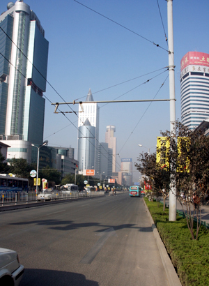 Jinan's no-car street on "Car-free Day" on Saturday, September 22, 2007.[chinadaily.com.cn]