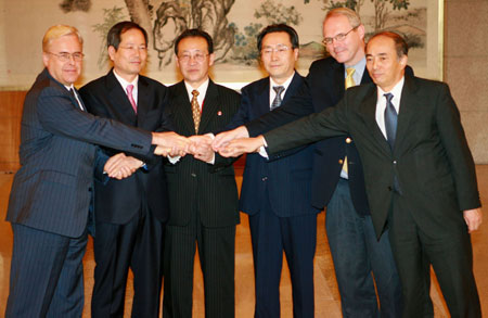 Details of the agreement will be made public after it receives approval by the concerned governments. The latest session of the multilateral talks, which opened on Thursday, aimed to work out a roadmap for the Democratic People's Republic of Korea (DPRK) to declare and disable its nuclear programs in line with a February 13 agreement reached by China, the United States, the DPRK, the Republic of Korea, Russia and Japan in exchange for 1 million tons of heavy fuel oil, or the equivalent in economic aid. Vice-Foreign Minister Wu Dawei, who is also the chief Chinese delegate, reading a statement at the Diaoyutai State Guesthouse in Beijing yesterday, said the negotiators had "meaningful discussions" over the four days, and will release a final version of a joint document as soon as possible. The draft "lays out an entire roadmap until the end of the year" for the DPRK's nuclear disablement, US Assistant Secretary of State Christopher Hill, also the top US negotiator, told reporters yesterday before returning to his country. "We're into the nuts and bolts now of implementing denuclearization," Hill said. The level of details, he said, made it necessary for him to return to Washington for consultations. Though Hill declined to disclose details and the draft was not released, the ROK nuclear envoy Chun Yung-woo said the proposed blueprint set some deadlines for Pyongyang and for the other parties to meet. "The document outlines a timeframe on what the DPRK needs to do in terms of its disabling duties," Chun said at the close of the talks. "The text clearly states that it will be completed by December 31." While the US also restated its intention to eventually remove the DPRK from a list of countries that sponsor terrorism, the draft did not set a deadline, Chun said. Envoys described the meeting as a step forward. "Many countries exerted the spirit of compromise," Chun said. Hill said: "Frankly, of all the six-party meetings, this was the least stressful in terms of coming up with common positions." Agencies contribute to the story. |