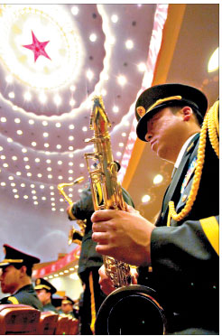 Military band members perform during the closing ceremony of the congress in Beijing yesterday. AP