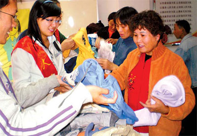 College students in Jiangsu Province donate clothes to people on October 17, the International Day for Eradication of Poverty. [China Daily]