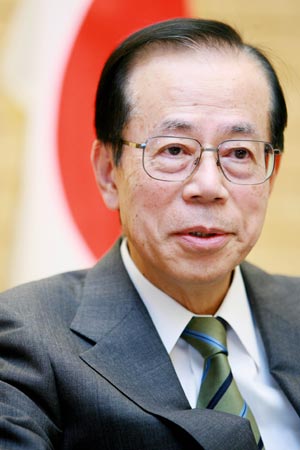 Japanese Prime Minister Yasuo Fukuda is in an interview with Xinhua and other Chinese media at the prime minister's office in Tokyo on Tuesday December 25, 2007 before his upcoming visit to China. He said he hopes to further promote relations with China to a new stage. [Xinhua]