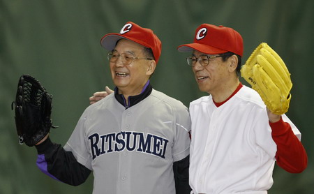 Wen and Fukuda had breakfast together ahead of the baseball play at the Diaoyutai State Guest House. Wearing a red baseball cap and grey sport wear, Wen played a game of throw and catch with Fukuda, a former university athlete, who wore white outfits. The play was not on Fukuda's tight visit schedule, but an extempore arrangement after Friday's talks between Wen and the Japanese Prime Minister, according to sources with the Chinese Foreign Ministry. Fukuda recalled during the talks that he proposed to play baseball with the Chinese premier after Wen's visit to Japan in April, but had not received reply. Wen made an immediate response that he would find an opportunity to throw and catch baseballs with Fukuda. Wen played baseball with Japanese college students during his "ice-thawing" trip to Japan, when he especially wore a No. 35 sport suit to mark the 35th anniversary of the normalization of the China-Japan relations. Fukuda will visit a primary school in northeastern Beijing after the play before leaving for an economic development zone in Tianjin, home to many Japanese-funded companies. He will also visit the hometown of Confucius in Qufu, Shandong Province, before wrapping up his four-day China tour on Sunday. The China tour was the third overseas trip of Fukuda after he took office three months ago. He visited the United States and Singapore before. A book on Wen's April visit to Japan, titled "Baseball Player No. 35: Wen Jiabao", was published recently in Japan.  |